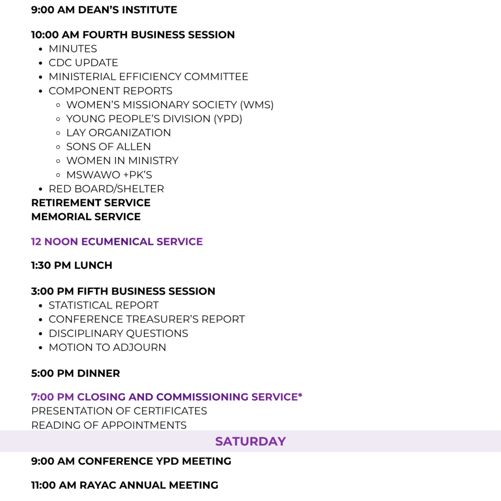 Annual Conference Schedule - Friday and Saturday